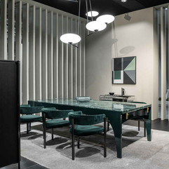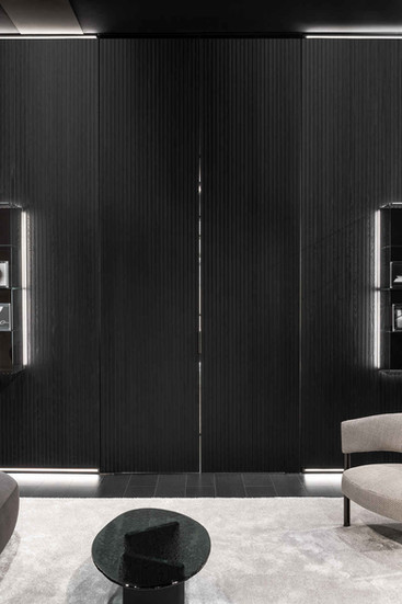 Lacquer—central to the design—creates an effect of lightness and brightness, while the suspended volumes between the top and the floor evoke a sense of fluidity and dynamism, perfectly in tune with the collection’s sophisticated character.