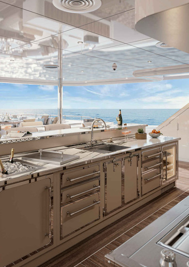 Traditionally, the kitchen on yachts has been relegated to a purely technical role, often hidden from view. Officine Gullo radically changes this perspective, transforming it into a central and convivial space, designed to become the heart of social life on board.